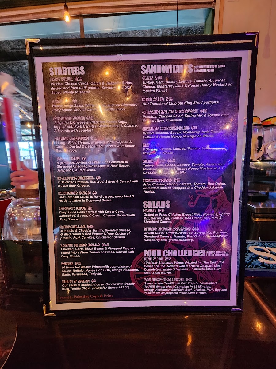 Welcome to FOXHOUSE Bar & Grill, a culinary haven located at 3814 W Oak St, Palestine, TX. Here, the mouthwatering menu is designed to delight every palate. Indulge in the Pork & Slaw sandwich, featuring succulent pork carnitas topped with slaw and bacon for just $14.07. For a twist, try the Wet Donkey, an overloaded fried tortilla bursting with flavors for $14.00.